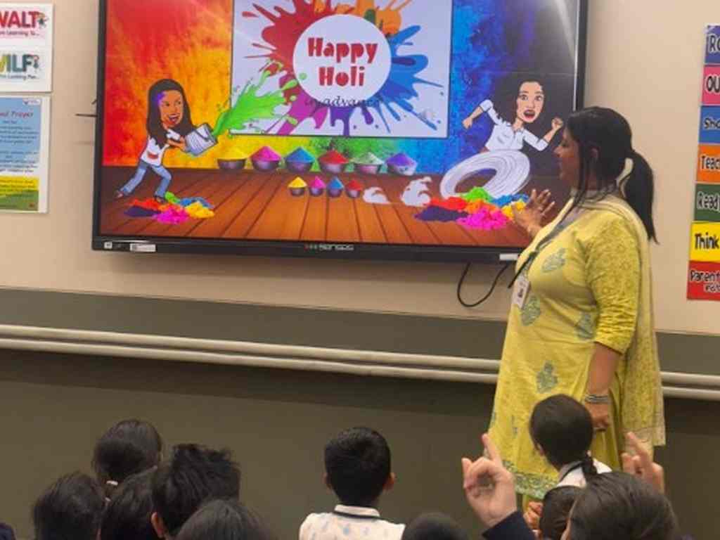 Our students enthusiastically learned why and how Holi is celebrated and discovered the rich cultural significance it holds across different regions of India. From the playful traditions of Mathura and Vrindavan to the unique customs observed in different states, learners gained a deeper understanding of how this joyful festival brings people together across the country.