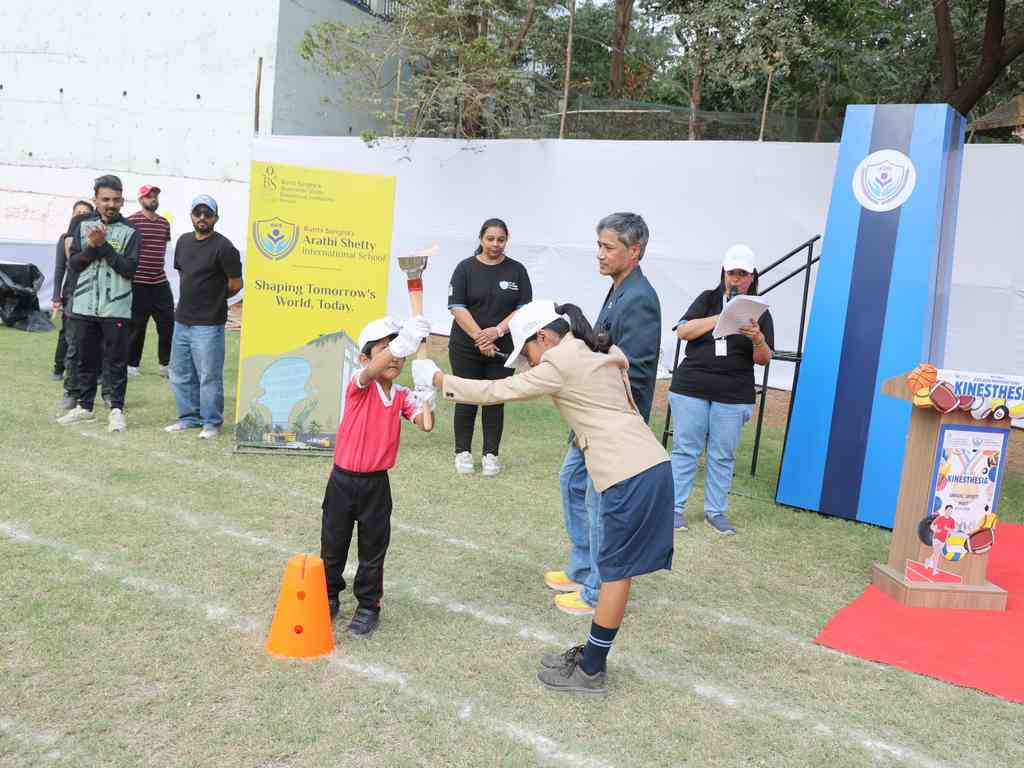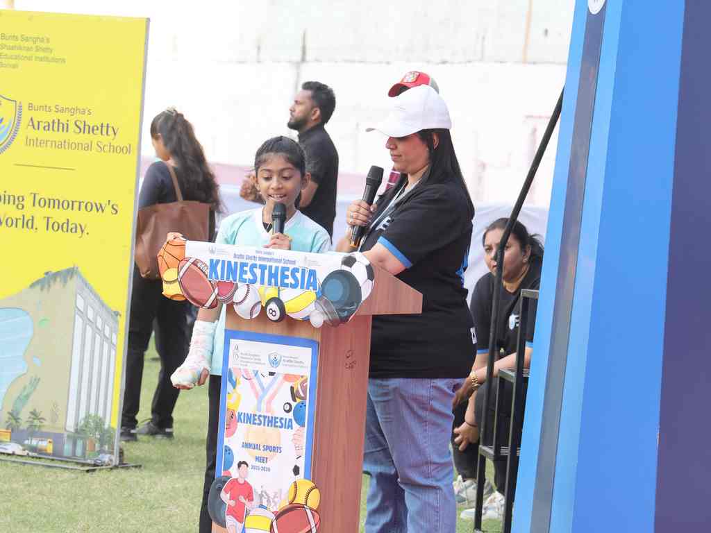 The programme commenced with a warm welcome to our distinguished dignitaries and our esteemed Chief Guest, Atmikha Poojary, whose gracious presence and encouraging words inspired our young learners to strive for greatness both on and off the field.
