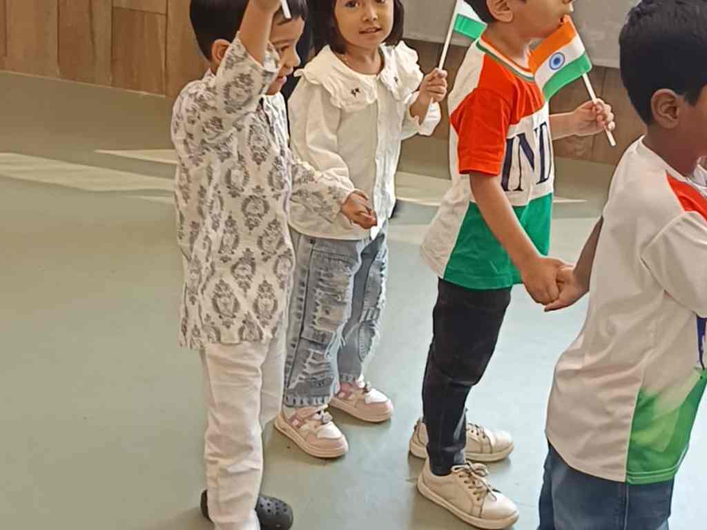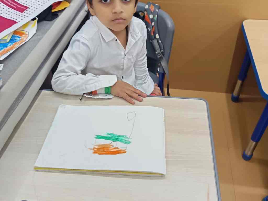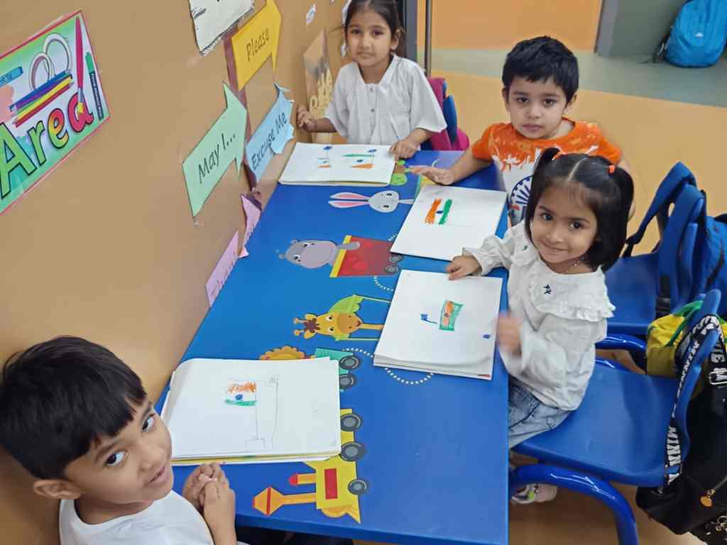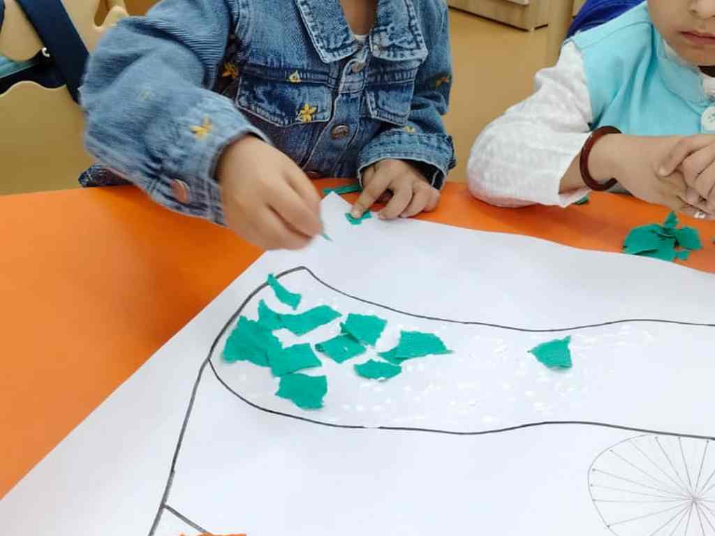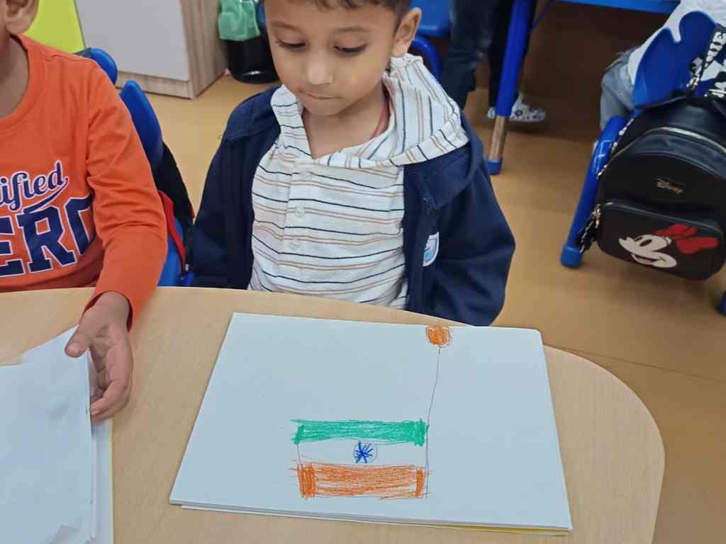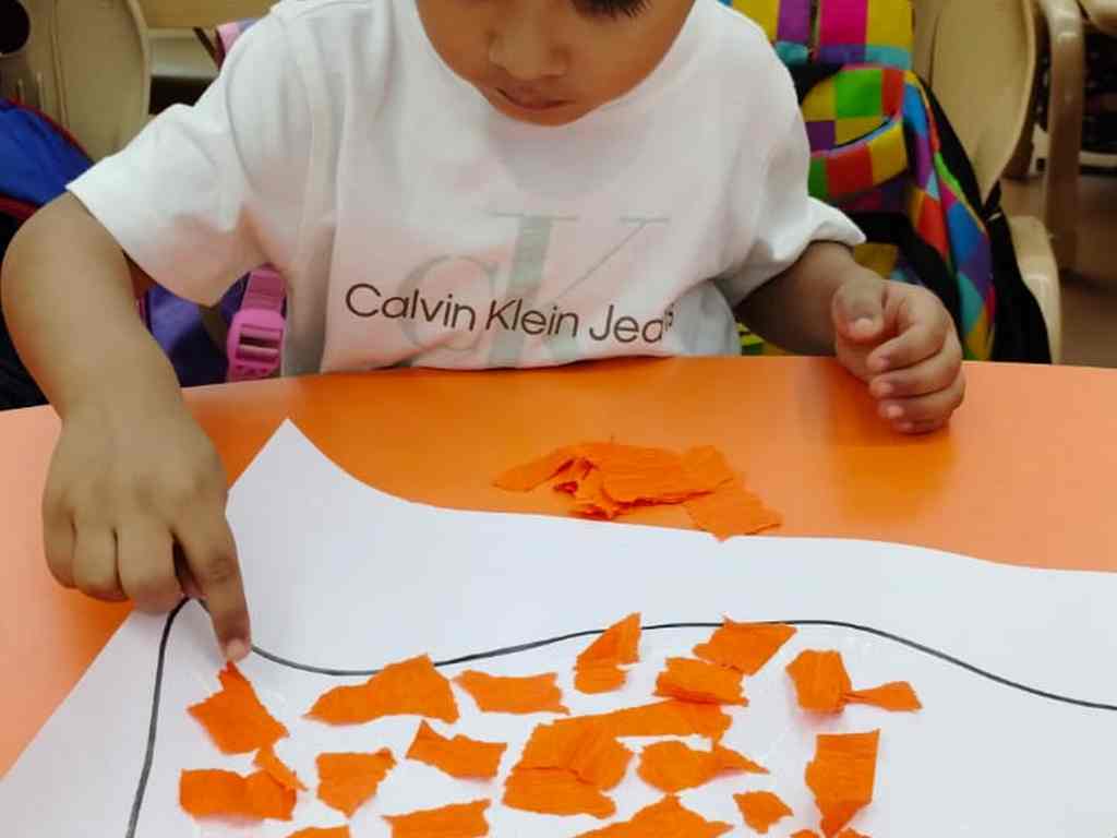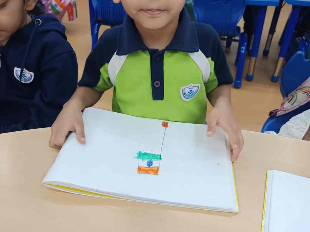 tearing and sticking, and creating beautiful tricolour crafts. These activities helped